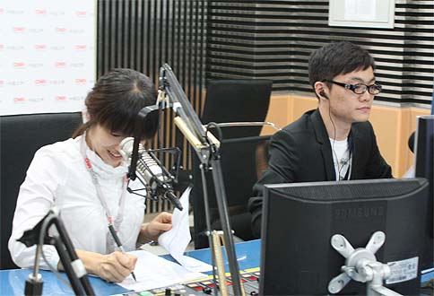 中國之聲主持人宇菲和胡凡在直播中