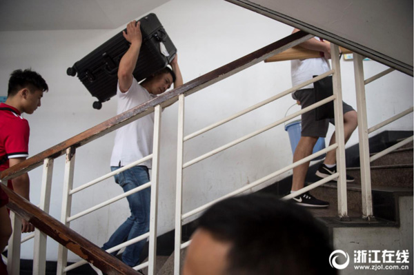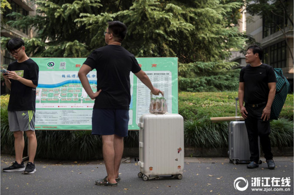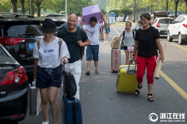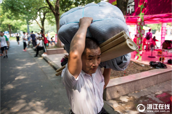 9月6日,又到一年開學季,下沙各高校校園內堪比春運現場。校園里家長人數甚至超過了學生,最重的行李也往往都在父母的肩膀上。父母們不遠千里來送孩子上學,幫孩子背行李、代辦手續、打掃寢室衛生,忙得不可開交。有的高校也在校園里豎起了讓孩子獨立的宣傳語。(浙江在線記者 馮賀 張孫超 見習記者 奕婷婷 攝)
