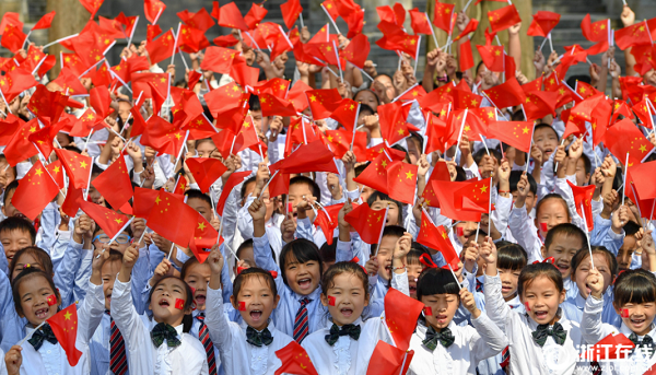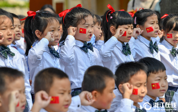 9月29日,德清縣下渚湖街道二都小學舉行“心向祖國心向黨 善行實踐助成長”國慶主題教育活動。全校師生一起高唱國歌,在國旗下宣誓,表達對祖國母親的熱愛和祝福,喜迎新中國69周年華誕。(記者 董旭明 拍友 王正 孫麗麗 攝)