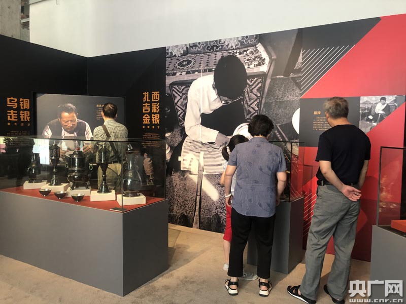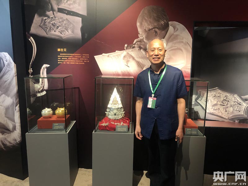 在“知者創物”板塊中“金藝求精”展覽中,特邀了傳統金屬工藝類國家級非遺傳承人進行作品展示。來自北京景泰藍制作技藝、上海金銀細工制作技藝、山西大同銅器制作技藝等非遺項目的15位國家級代表性傳承人的作品集中亮相,吸引了眾多觀眾前來參觀。